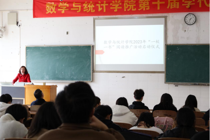 最后,我院党总支书记彭巧燕发表讲话,她鼓励我院全体学生干部调动自身积极性,主动参与学校举办的各类活动,提出了“整合学院资源,打造具特色品牌”的目标要求,并对学校2023年“一校一书”阅读推广活动进行了详细说明与工作部署。