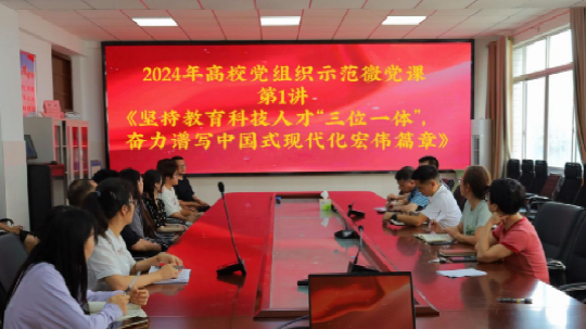 为深入学习和贯彻党的教育方针,推动教育、科技、人才的融合发展,9月4日我院于理科楼(1)306展开了以“担当教育新使命,奋进强国新征程”为主题的微党课活动,此次参加活动的有党总支书记彭巧燕,院长李龙,党总支副书记彭正,副院长李浏兰以及全体师生党员。
