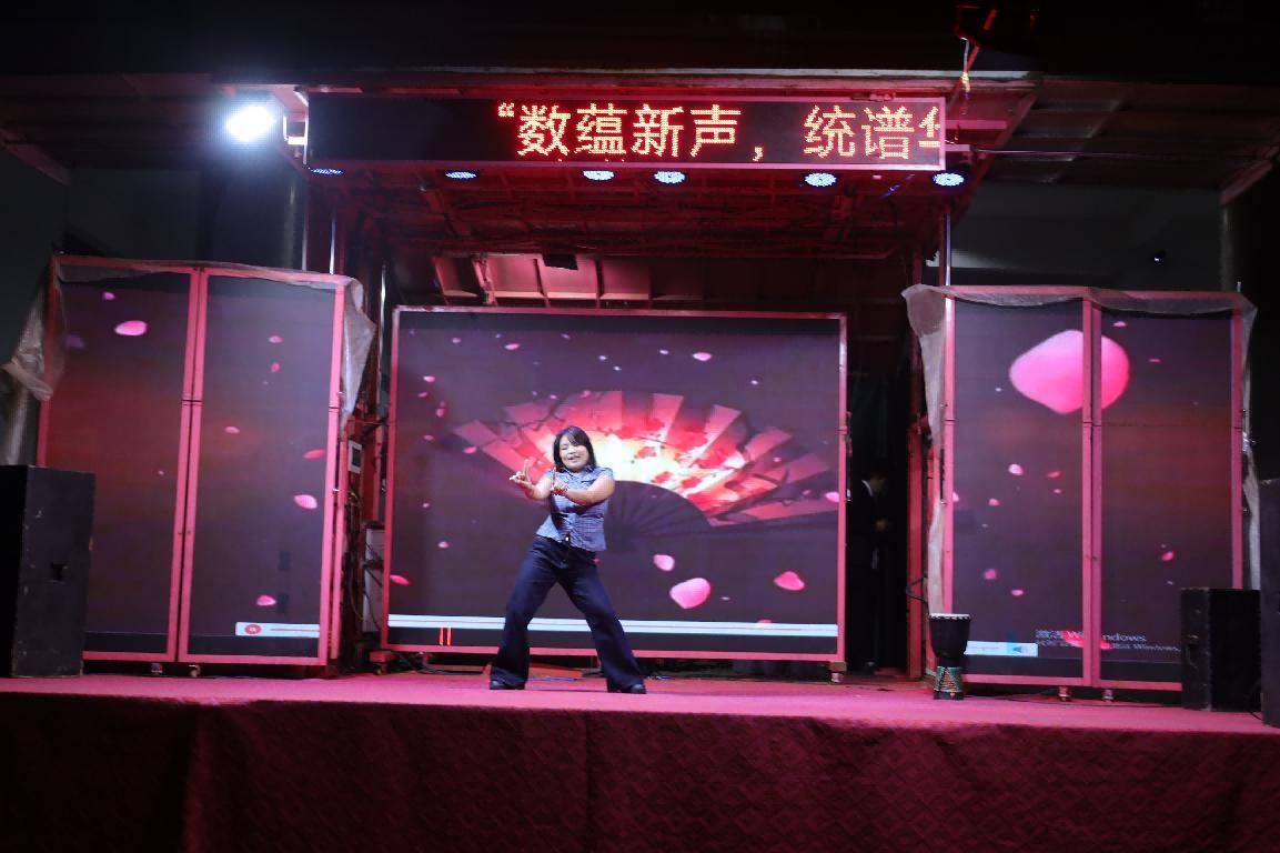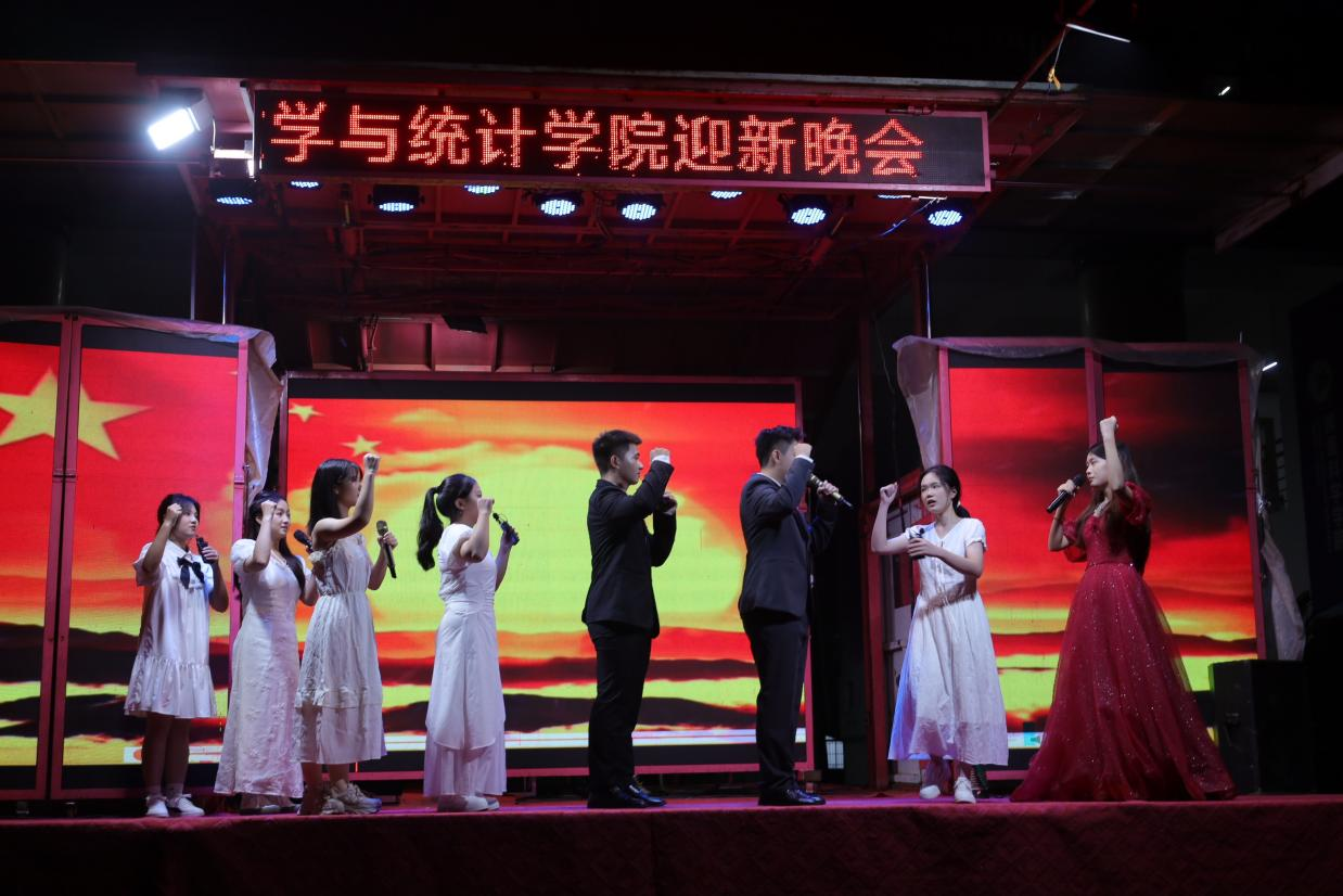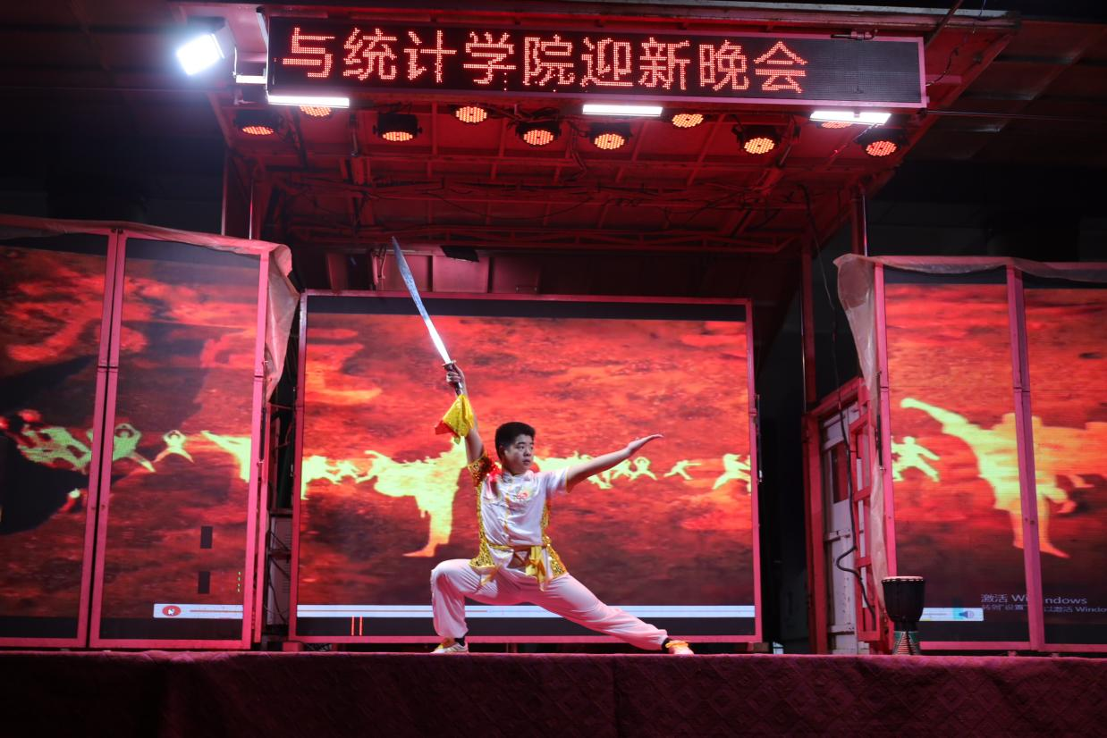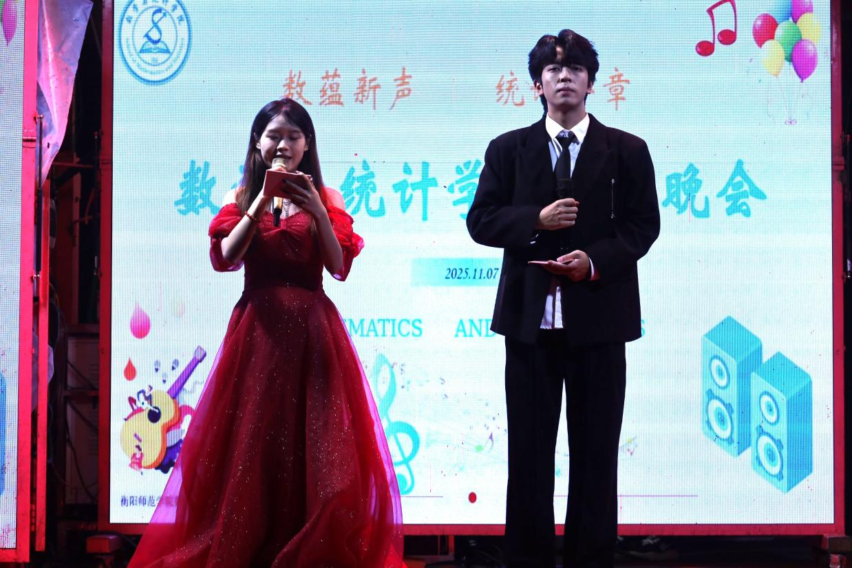 在第二篇章中,彭巧燕书记、黄钽成老师、周长恩老师、唐威老师、米子老师、颜绘锦老师共同献唱《明天会更好》,用歌声传递对学子们的殷切期许与美好祝愿,真挚情谊直抵人心,成功将晚会氛围推向又一个温馨小高潮。紧接着,精彩轮番上演:25T2胡琪慧携22级法院吉他手孙磊,带来清新活泼的弹唱《太聪明》;艺术团主持人们献上铿锵有力的朗诵《红铁》,尽显赤诚担当;2506黄为凯的武术表演《墨舞孤影》刚柔并济、气势十足。这场多元风采的集中展现,充分彰显了数统学子的多才多艺与青春活力。