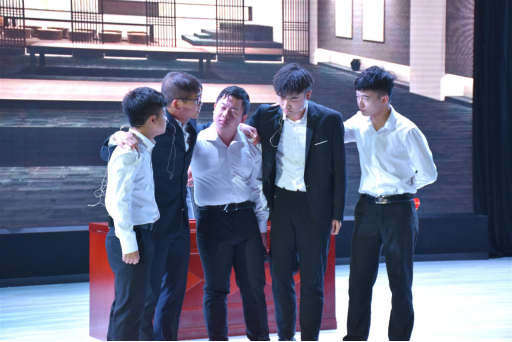 晚会现场朗诵、歌曲、舞蹈、小品轮番上演,为在座师生带来了一场视与听的盛宴。一段热情澎湃的舞蹈拉开了本场晚会的序幕。诗歌朗诵《声律启蒙》充分展现了中华文化的博大精深,将国学中的经典娓娓道来;小品《打劫》把道德融入爆笑情节,引人深思;《父亲写的散文诗》中字里行间透露着父亲对子女深深的爱;舞蹈《rumor》活力四射,激情满满;神秘嘉宾刘琴老师和特邀嘉宾体育科学学院辅导员崔亚杰老师倾情演绎的歌曲《光年之外》瞬间将本次晚会推向最高潮。舞蹈《水月洛神》、小品《甲方乙方》和歌曲《suger》接连上演,精彩不断,洛神的风姿绰约,甲方乙方的用心演绎,激情的音乐与旋律带给观众无限惊喜。《绝地舞娘》结合热门游戏,运用创新手法演绎了一段不一样的爵士舞。随后进入部长受聘环节,由邹书记及谭书记为各部门部长发放聘书,给予全体学生干部莫大地鼓励。《给青春理个短头发》将歌舞与军旅生活完美融合,彰显了大学生的活力与青春。《starry night》中的热情奔放的舞姿带动了全场气氛;小品《八月桂花香》让观众感受到抗战中纯洁青涩的感情也不乏浪漫。晚会最后在全体学生会成员合唱的《爱 因为在心中》圆满落下帷幕。