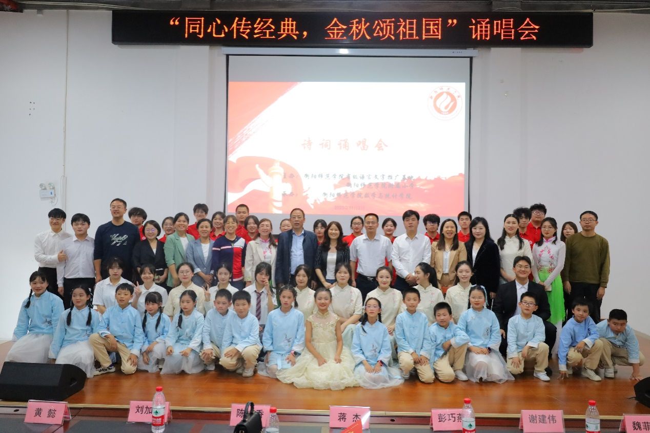 为深入贯彻落实党的二十大精神和《中华经典诵读工程实施方案》精神,切实发挥语言文字在传承发展中华优秀传统文化的重要作用,大力推动语言文化艺术在校园内的普及,提高学生的综合素养,伟德BV1946省级语言文字推广基地携手伟德BV1946附属小学、1946伟德国际源自英国,于11月2日在衡师附小演播厅开展“同心传经典,金秋颂祖国”诵唱活动。