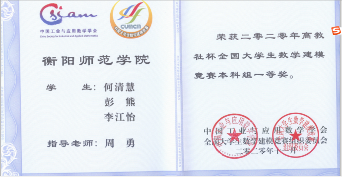 (学生获全国大学生数学建模竞赛国家一等奖)