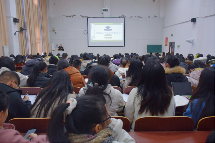 为加强2021届毕业生日常管理,有效落实学生毕业就业工作,128日下午三点,我院在外语楼110教室召开了2021届毕业生年级大会。此次会议由我院辅导员兼就业专干周长恩老师主持,2021毕业生到场参加。