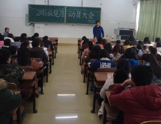 会上,李龙副院长首先作动员讲话。他就本周见习的目的和意义、见习单位、听课时间、指导老师的分配四个方面进行详细说明,此次见习在衡阳市船山实验中学进行,每班配备一名带队老师。紧接着,李龙副院长又强调了见习中的注意事项,尤其是离校、返校途中的安全。并对在座同学提出了三点诚恳的要求:做到课前备课有把握、课上认真做记录、课后总结常反思。