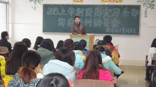 3月10日下午,我系2015年上学期师范生顶岗实习岗前培训动员会在数学楼420教室举行,系副主任杨柳、李龙及岗前培训指导教师和2012级报名参加顶岗实习的全体学生参加了动员会。动员会由系副主任李龙主持。