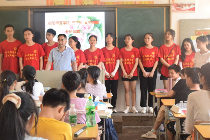 为响应大学生“三下乡”社会实践的号召,在茶山坳镇一环东路第二中学曾春锋校长的大力支持和帮助与我院党总支副书记谭全球的带领下,我院“微光·耀梦”教育帮扶实践团于7月9日上午抵达衡阳市珠晖区第二中学,开展以“永远跟党走,青春敢担当”为主题的暑期“三下乡”社会实践活动。
