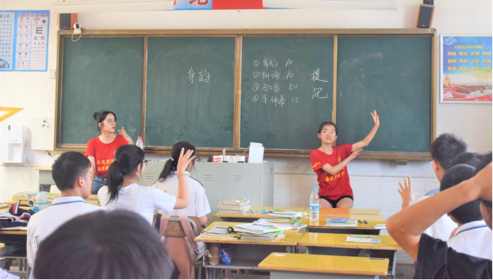 本次暑期“三下乡”社会实践活动主要面向珠晖区第二中学初二学生,以教育帮扶的形式,结合当地学生学习的薄弱环节和课程缺失,有针对性的开展以数学为主的教娱结合的课程,其中包括数学课、活力英语课、国学与鉴赏等十种课程,让学生在进一步掌握数学知识的同时,促进个人“德、智、体、美、劳”的全面发展,多方面培养学生兴趣爱好。此外,面对个别“贫困生”、“学困生”,志愿者们对其开展一对一教育帮扶,让每一个学生学有所得,帮助他们建立知识改变命运的信念,形成积极进取、奋发图强的精神风貌。谭书记带领我院实践团通过与班主任交流、分析上学期学生成绩报告、跟学生对话、家访等多种渠道全面了解学生学习情况、平时的兴趣爱好,为学生制定符合学情的教学方式,以学定教,采取真正适合并满足学生的学习需求,让教真正落到实处,构建以生为本高效课堂。调研与资助宣传工作同步进行,全面了解城市边缘地区基础教育现状。