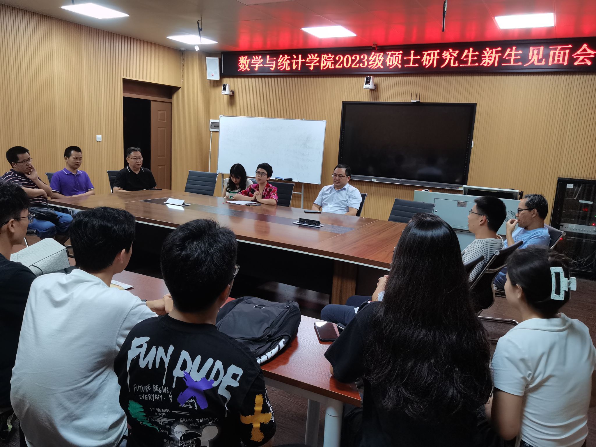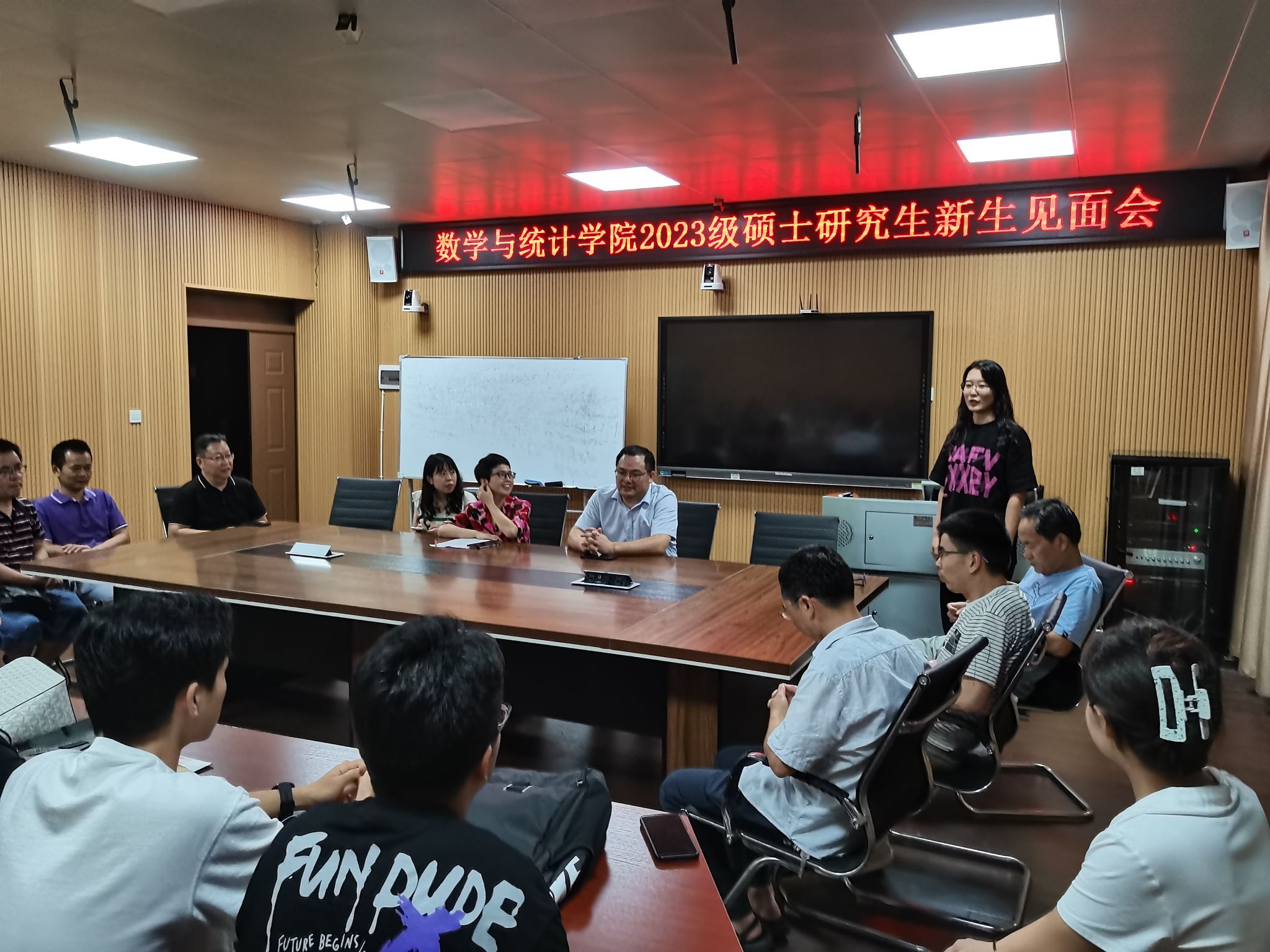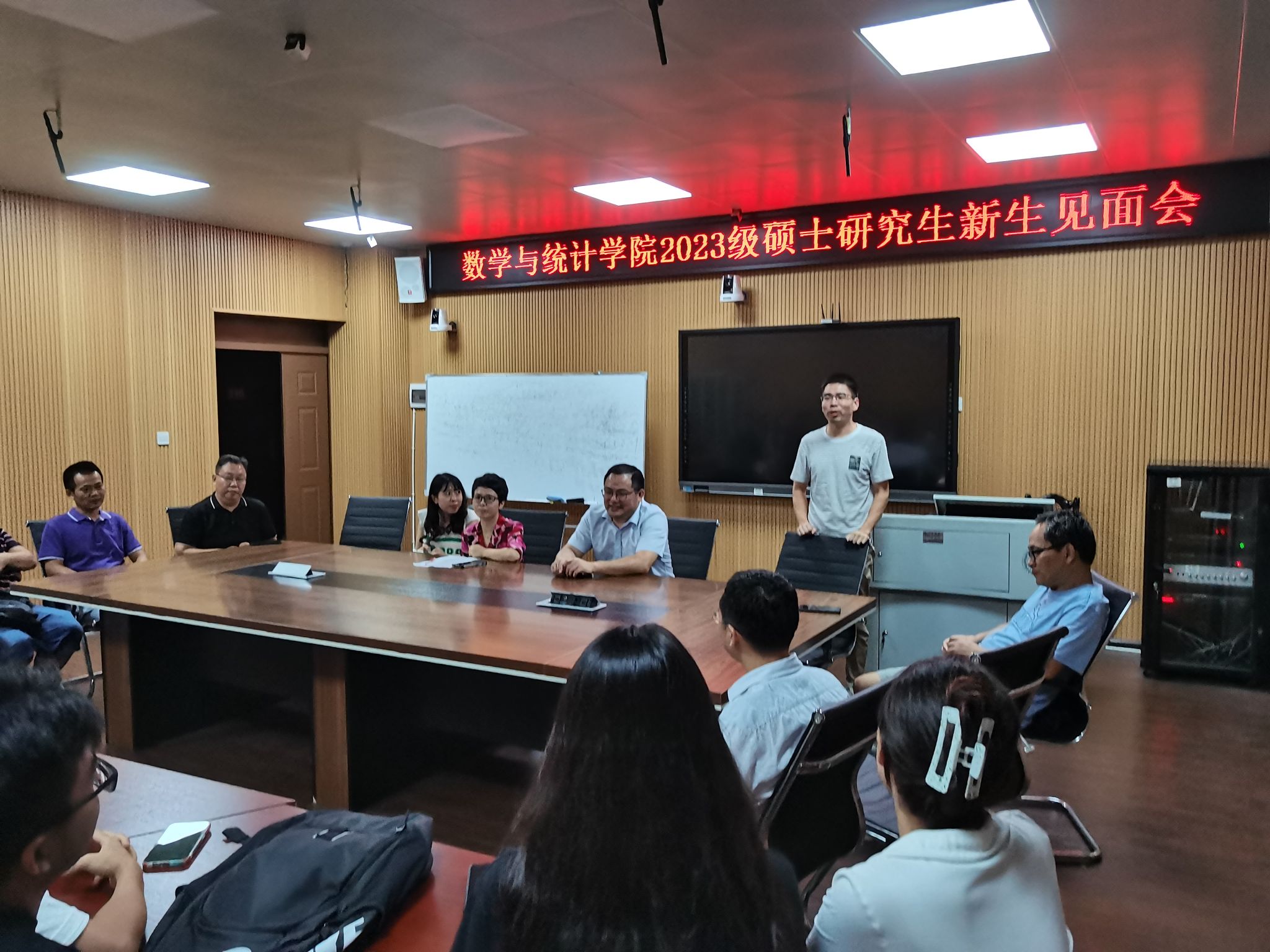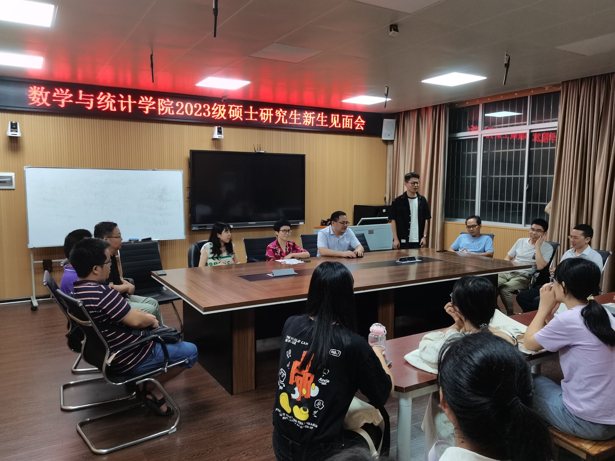 9月13日晚上19:30,我院2023级硕士研究生新生见面会在数学楼311会议室举行。副院长李浏兰、副院长阳志峰、研究生导师、研究生秘书、辅导员、2023级全体研究生参加会议,会议由研究生秘书周立君主持。