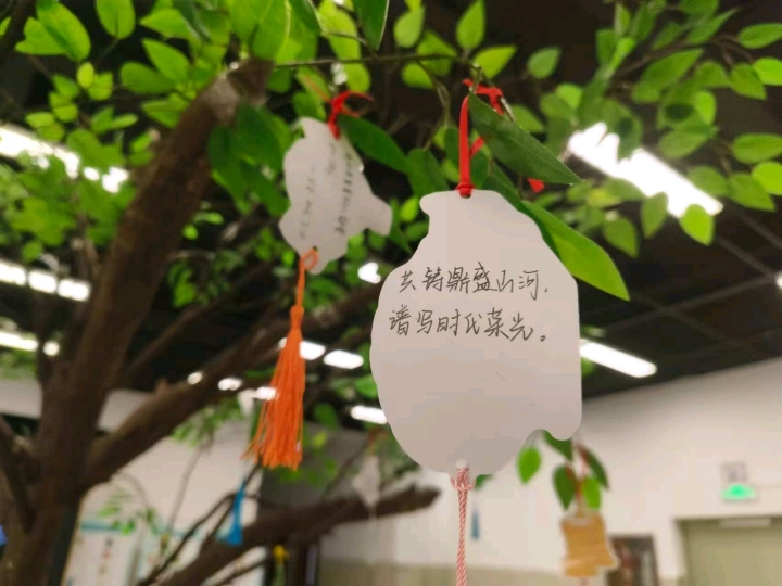 在寄语“英雄树”活动中,数统学子以笔寄情,在卡片上写下“吾辈当以青春守护这盛世中华!”等真挚誓言,与其他学院学子的寄语共同装点“英雄树”,在图书馆内形成一道传承红色精神的动人风景线,彰显数统学子传承红色基因、勇担时代使命的坚定信念。
