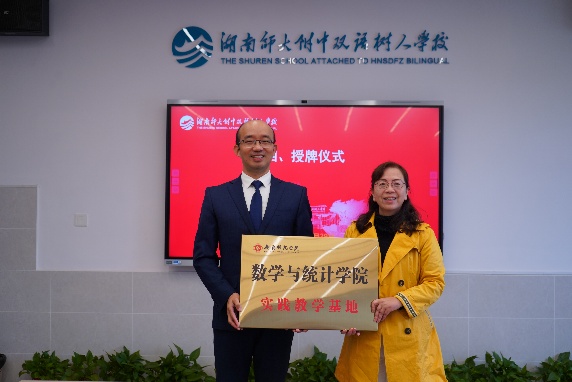 为深化校校合作协同育人,提升学科教学(数学)硕士研究生的教育实践能力,10月29日,在学院党总支书记彭巧燕等带领下,我院研究生团队赴长沙市湖南师大附中双语树人学校,开展“雁城星谊·牵手树人”教育见习研习活动。在树人学校的精心组织下,本次活动涵盖校园参观、见面授牌、课堂观摩和评课研讨等环节,内容充实、节奏紧凑,师生收获丰富。