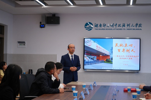 随后举行的见面交流会暨“伟德BV1946教育实践基地”授牌仪式上,陈赛强校长致欢迎辞,并作《“天地立心,百年树人”——新建九年一贯学校优质发展的双语树人实践》主题报告,从领导关怀、集团支撑、办学目标、办学特色等方面,详细介绍了树人学校在优质发展道路上的探索,重点阐释“一体两翼四维度”办学宗旨,全面展示树人学校的办学成果与发展蓝图。仪式由白容副校长主持。