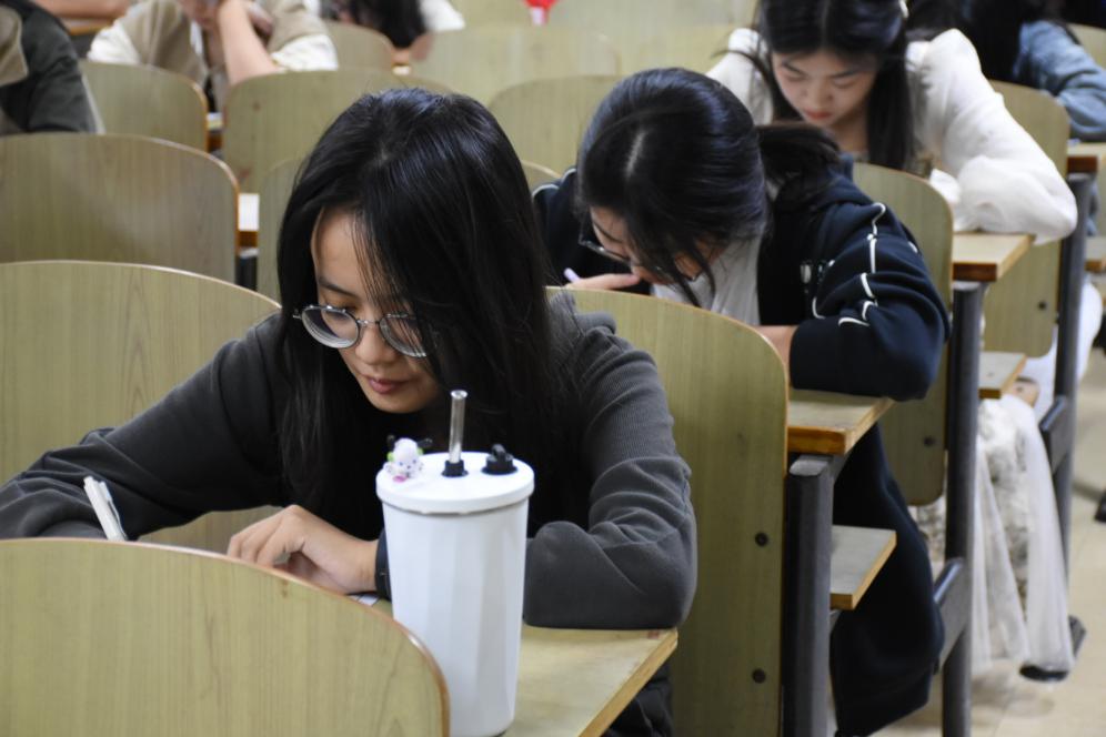 面对不同难度的题目,同学们始终保持着沉稳认真的态度,不骄不躁、迎难而上。遇到简单题时,大家稳扎稳打、力求准确;直面难题时,无人轻言放弃,而是沉下心来细细分析,在反复推敲中寻找突破口。这份对数学的热忱、对挑战的执着,正是数统学子最动人的模样。赛场之上,没有喧哗与浮躁,只有全神贯注的思考和全力以赴的作答,每一位参赛同学都用实际行动诠释着认真对待、全力以赴的竞赛精神。