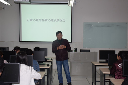 讲座围绕“正常心理与异常心理及其区分”而展开。刘世瑞老师从专业角度运用幽默的语言、生动直观的案例,跟在场的师生分享了他的一些感悟和体会。他着重分析了正常的心理活动有三大功能:一是能保障人作为生物体顺利地适应环境,健康地生存发展;二是能保障人作为社会实体正常地进行人际交往,在家庭、社会团体、机构中正常地肩负责任,使人类赖以生存的社会组织正常运行;三是能使人类正常地、正确地反映、认识客观世界的本质及其规律性。随后他又重点讲解了异常心理的表现:离奇怪异的言谈、思想和行为;过度的情绪体验和表现;自身社会功能不完整;影响他人的正常生活。随后刘老师从医学、统计学、内省经验和社会适应标准提出异常心理区分的标准。正常心理与异常心理识别的三大原则:主观世界与客观世界的统一性原则;心理活动的内在协调性原则;人格相对稳定性原则。