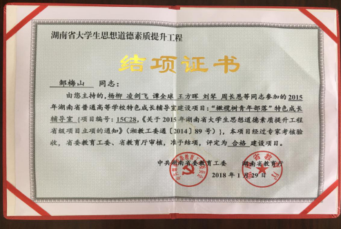经过专家考核验收,省委教育工委、省教育厅审核,“橄榄树青年部落”特色成长辅导室准予结项,评定为合格建设项目。