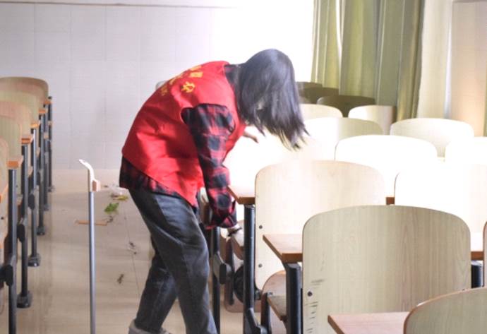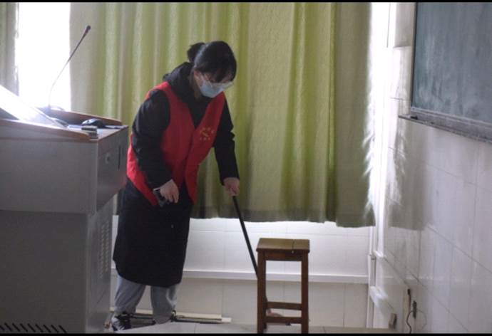 (我院学生进行教室打扫)
