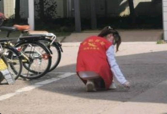 (我院学生进行路口清扫)