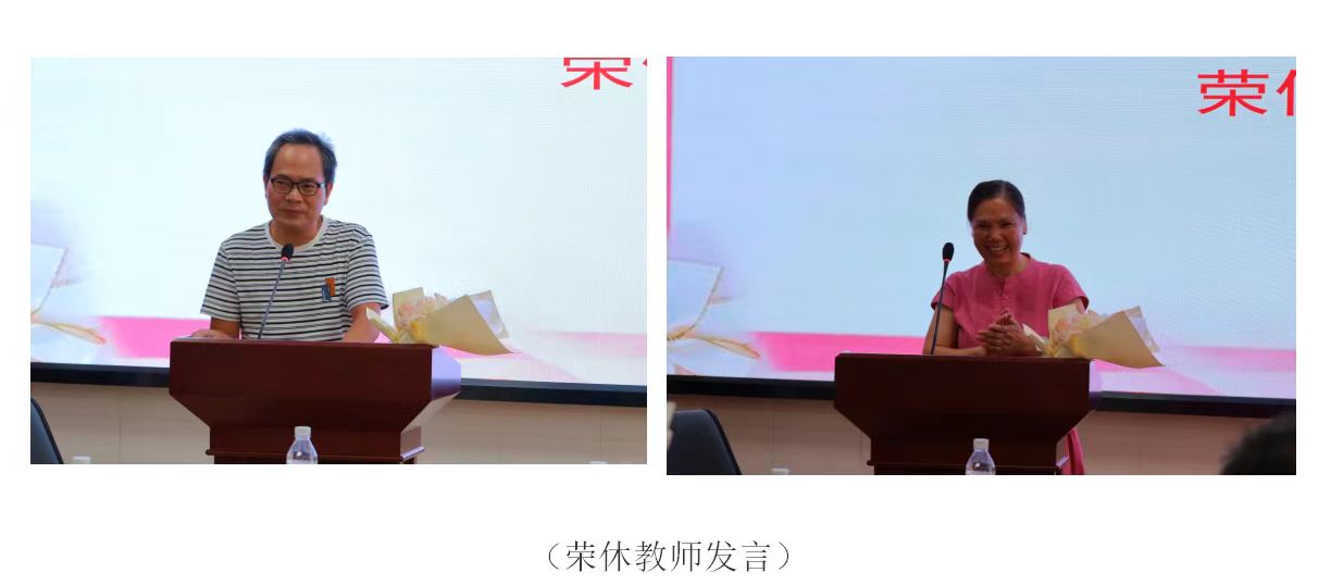 荣休教师罗李平和聂春芳老师分别发表了感言,他们分享了自己的教育心得和人生感悟,鼓励年轻教师继续为教育事业奋斗。随后,活动进入了教师代表座谈环节,教师代表们分享了自己的教学经验和教育理念。他们的发言充满了对教育事业的热爱和对学生的深情厚谊。