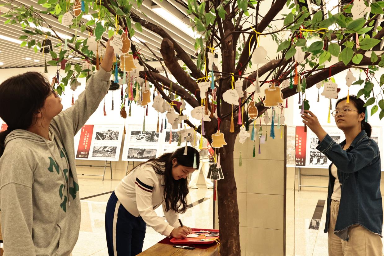 活动以红色图书展、抗战电影赏析、专题播报、非遗剪纸展、寄语英雄树等多元形式,打造沉浸式红色育人空间。数统学院师生在系列活动中重温抗战历史、感悟红色精神,与全校20余部门超万人次共同参与,让这场活动成为一堂有深度、有温度、有共鸣的“大思政课”。