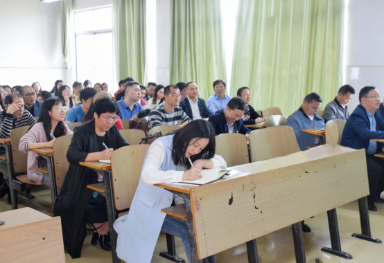(全体教职员工、学生党员认真聆听党课)