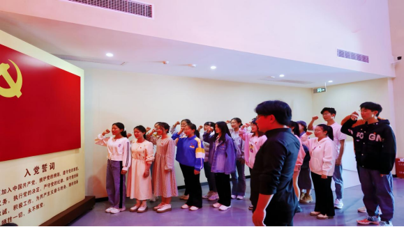 图4:本科生党支部书记唐威带领全体党员重温入党誓词